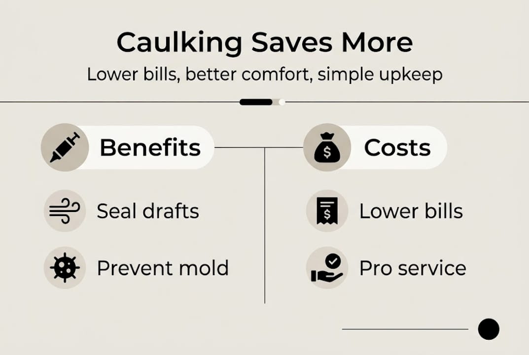Caulking punches well above its weight in terms of return on investment. The benefits stack up fast when you consider what a failed seal actually costs.