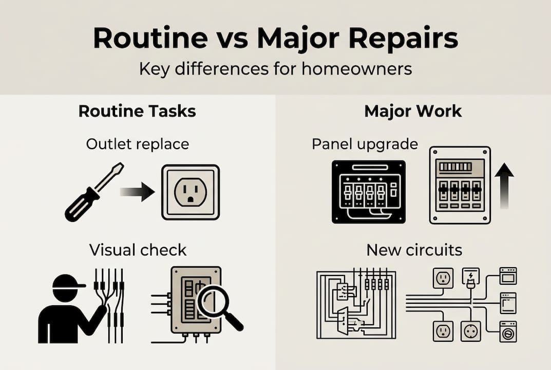 Routine electrical repair vs major electrical work: what homeowners need to know